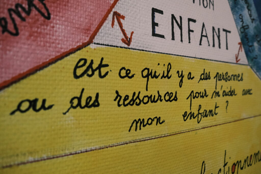 Une feuille griffonnée de bulles, de noms et de numéros de téléphone. Au centre, le prénom d’une enfant. Tout autour, les parents, grands-parents, oncles, tantes, amies… « Un enfant n’existe pas seul. Il est inscrit dans un réseau relationnel », explique Mohamed L’Houssni en pointant du doigt cette « écomap », qui cartographie l’univers affectif de cette petite.